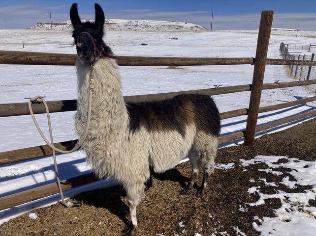 This is Vixen. 12/25/24 from Thomas and Maria. Easy going llama who will be a great packer. Sweet llama with friendly attitude. Great conformation 1500